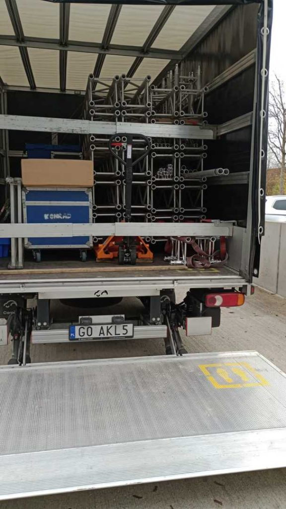 Eine seitliche Be- und Entladung ist möglich. Die Fahrzeuge sind mit Hebebühne und Hubwagen ausgestattet.Reguläre Abmessungen unserer AKL-Fahrzeuge: